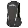 Le gilet airbag est doté d'un système électronique 100% autonome prête à, l'emploi et simple à réutiliser ainsi que d'un gros volume de gaz. Grâce à son gonflage ultra-rapide (100 ms), il assure une protection optimale des zones vitales: cervicales, dos, bassin, sacrum et thorax avant l'impact.