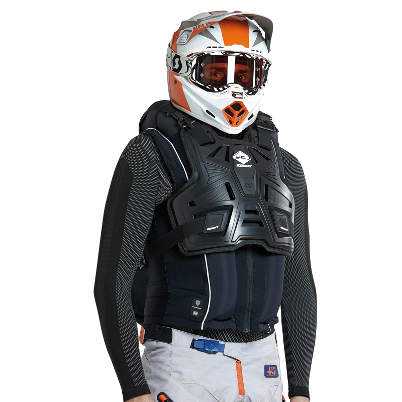 Développé et approuvé à la pratique off-road, le gilet protège les zones vitales (pectorale Kenny Mission EN 1621-3 niveau 2, coudes et épaules SAS TEC niveau 2 et intègre la technologie Turtle (dorsale SAS TEC niveau 1).