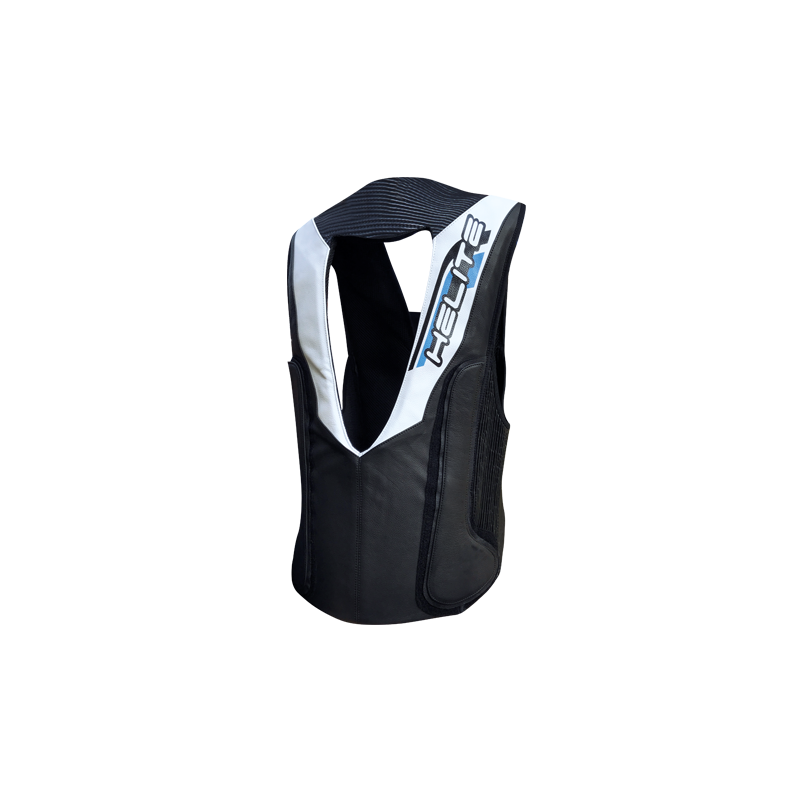 Le gilet airbag est doté d'un système mécanique prêt à l'emploi et simple à réutiliser ainsi d'un gros volume de protection. Grâce à son gonflage ultra-rapide (100 ms), il assure une protection optimale des zones vitales : cervicales, dos, bassin, sacrum et thorax, avant l'impact au sol. Il est également composé de sliders en cuir amovible dans le dos pour une meilleure protection.